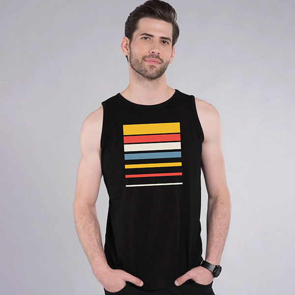 Men Black Printed Cotton Jersey Innerwear Vest