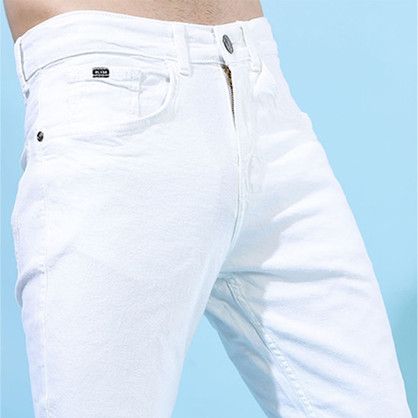 Men White Tapered Fit Mid-Rise Clean Look Stretchable Jeans