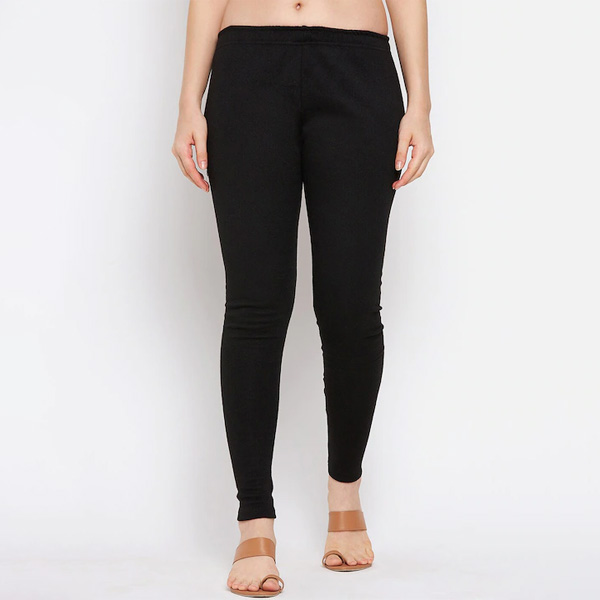 Women Pack Of 2 White & Black Solid Woolen Ankle-Length Leggings